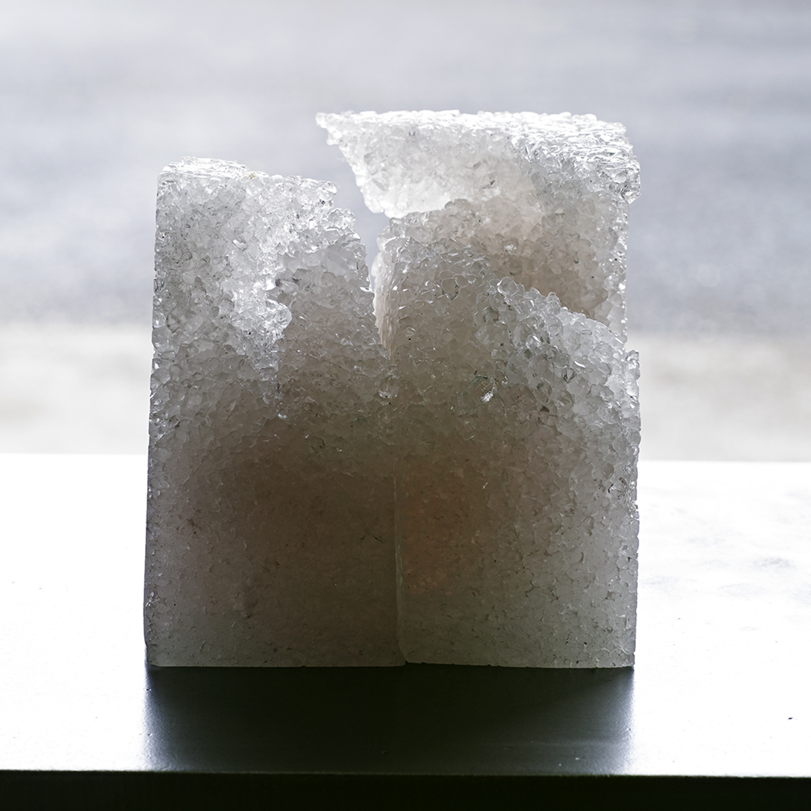 これは、1200℃に熔けたガラスを鋳型に流し込み、6週間かけて徐々に冷まし、型から取り出したものです。